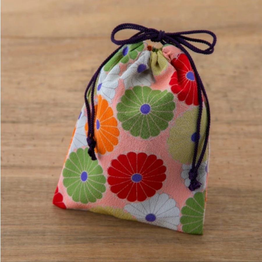 These gorgeous drawstring pouch have been lovingly made in Japan, from traditional fabric called Chirimen. Developed in the 16th Century, Chirimen has a unique "wavy" texture and is often used in Kimono, hair ornaments (kanzashi) and Furoshiki bags too.
