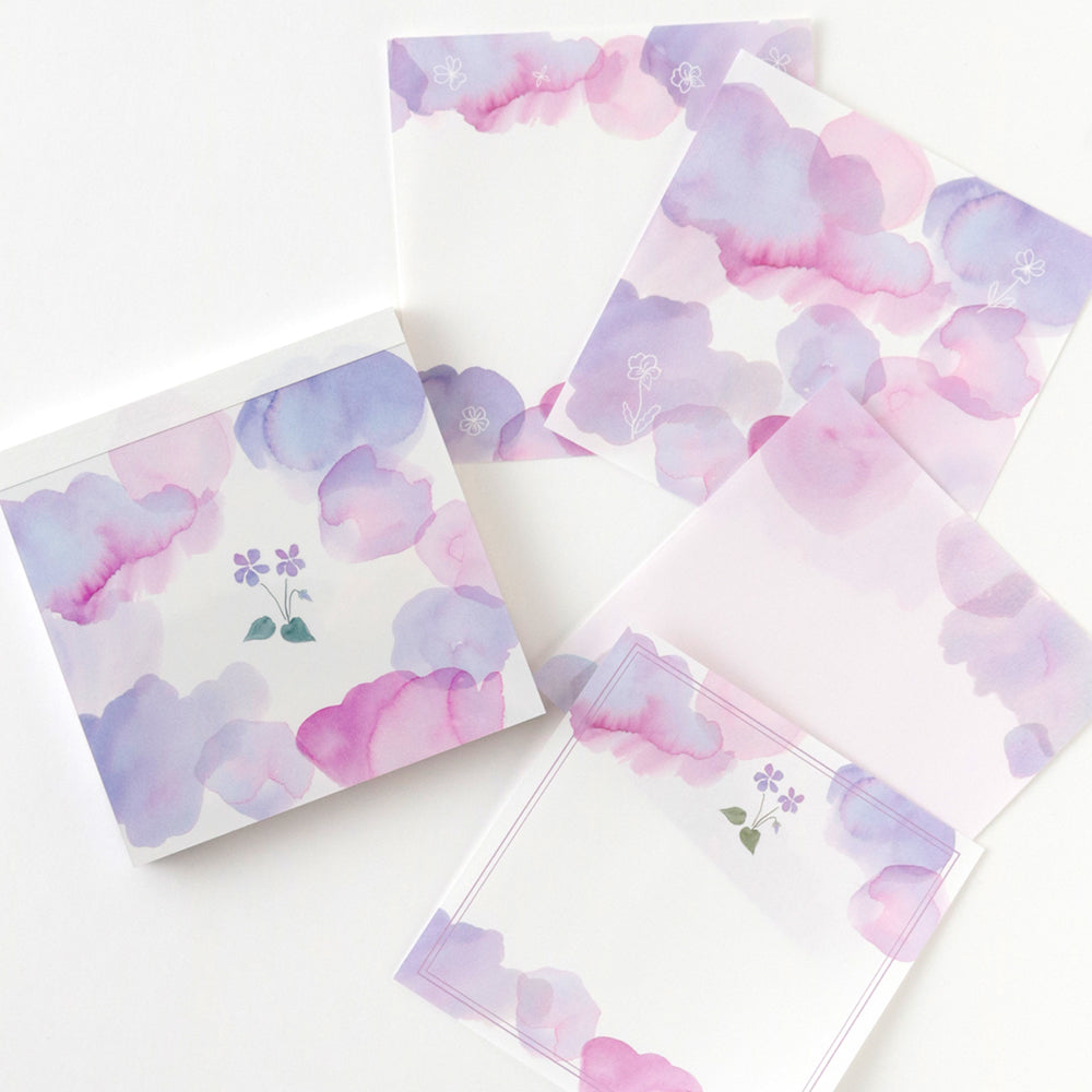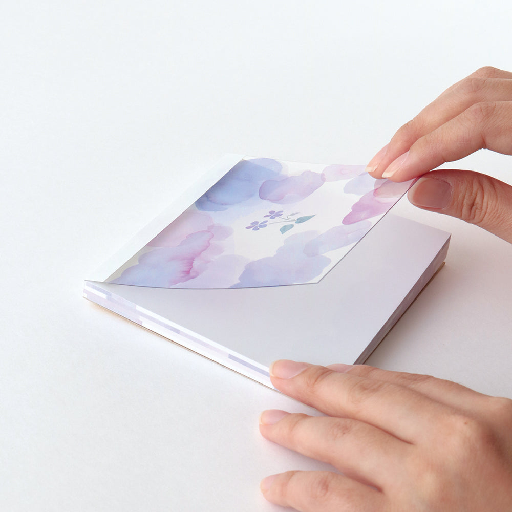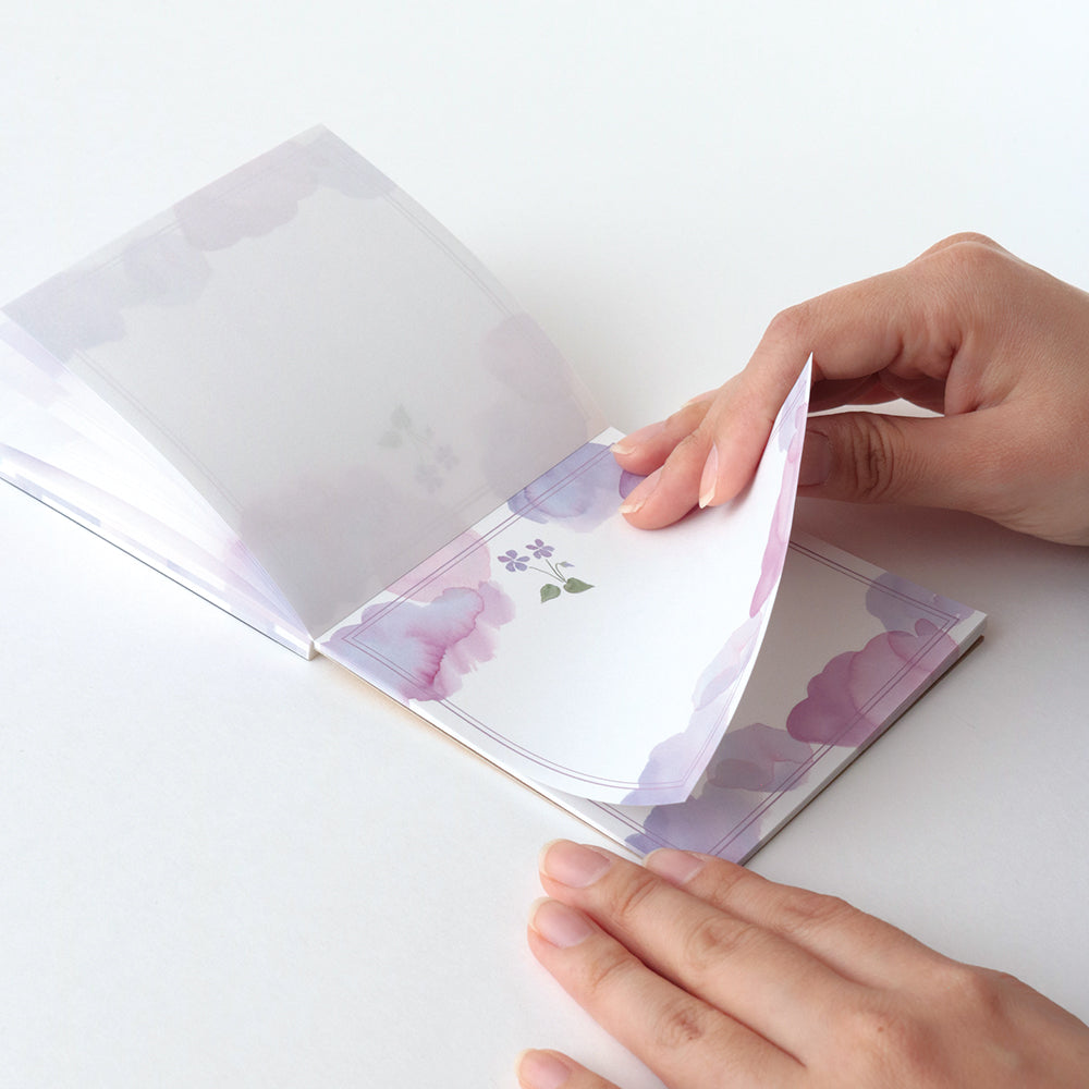 Part of the "Enjoy Colour" series (iro-wo-tanoshimu いろを楽しむ), these memo pads from Japanese brand GreenFlash feature a colourful violet floral design.