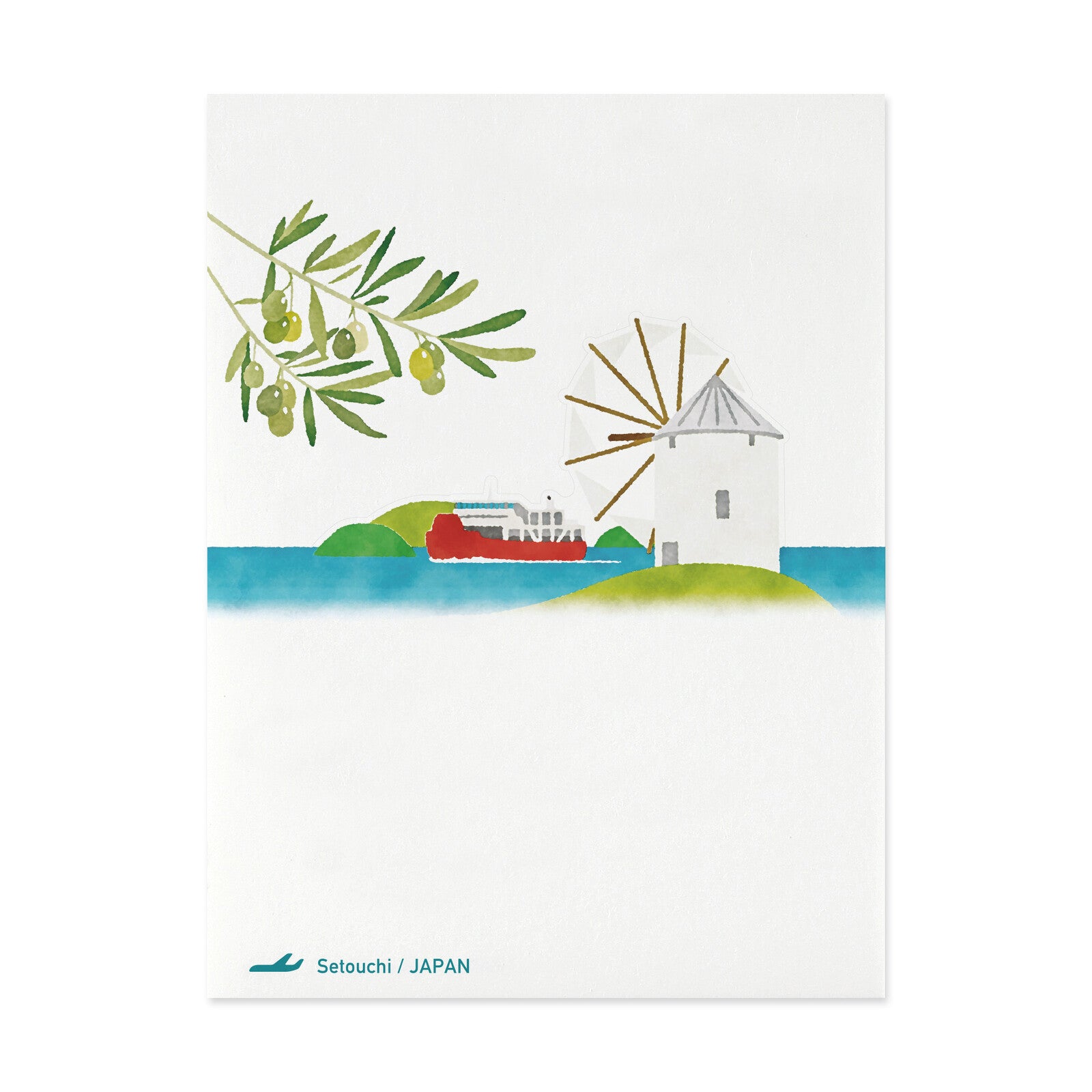Browse the range of designs covering Japanese cities and landmarks such as this one inspired by the Setouchi region in Western Japan. You'll find the Greek Windmill of Shodoshima depicted against a backdrop of the Seto Inland Sea.