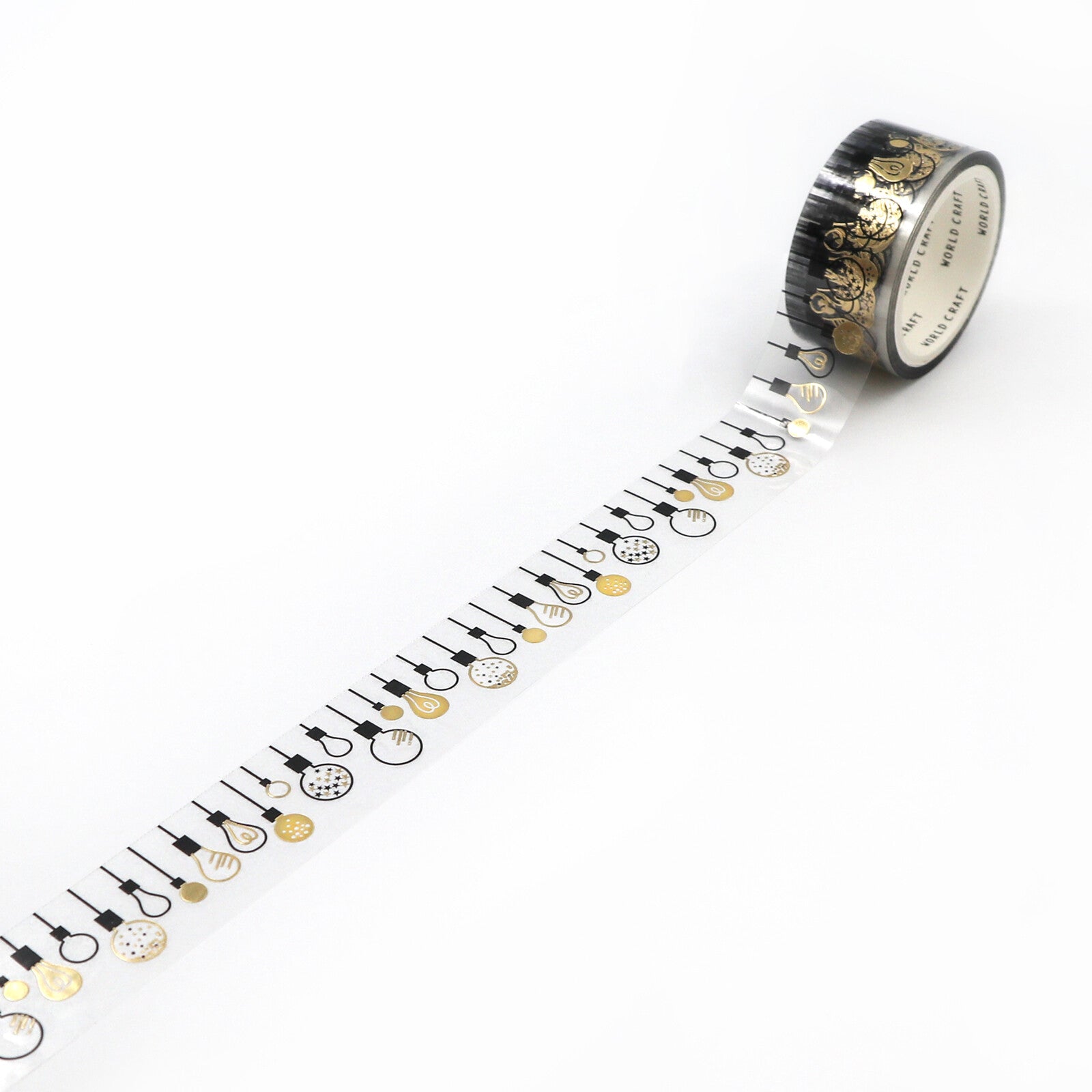 A cute collection of hanging light ornaments adorn this fabulous clear decorative tape from World Craft.