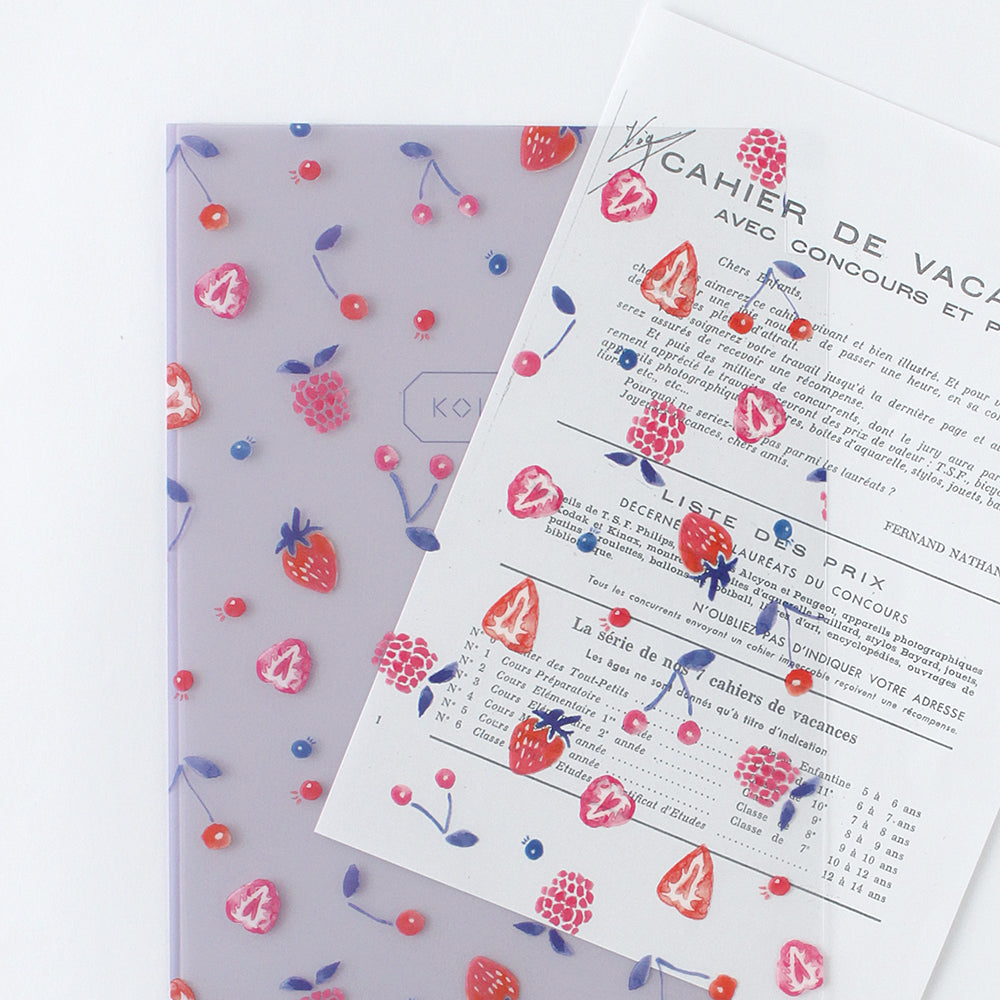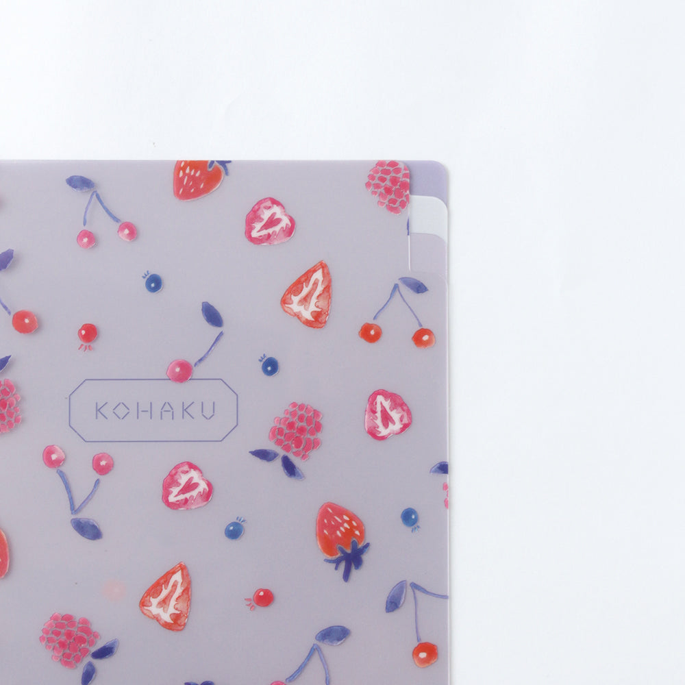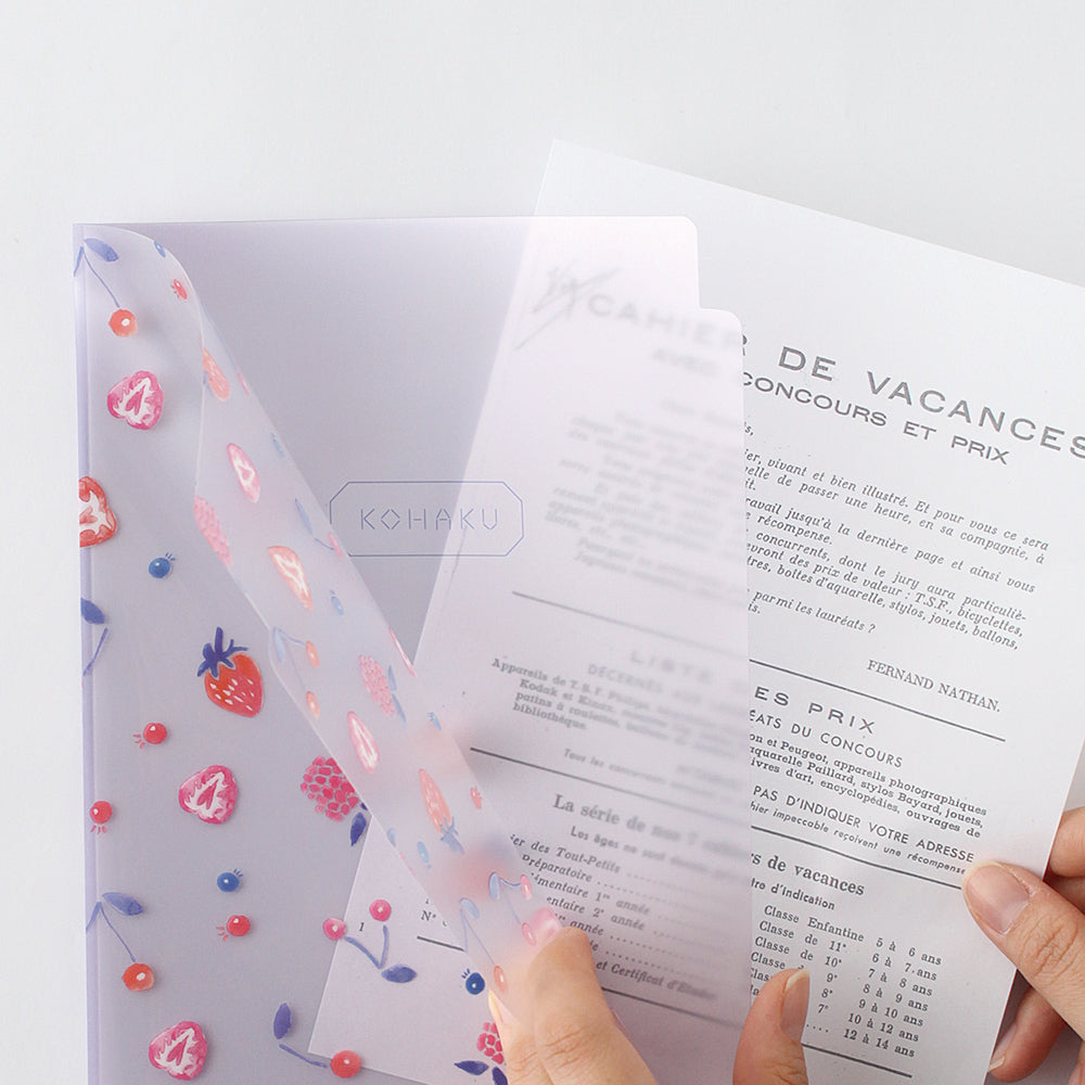 Part of the "Kohaku Series", these handy 3-pocket file folders from Japanese brand GreenFlash feature a colourful berry themed pattern. A delicate transparency brings the design to life.