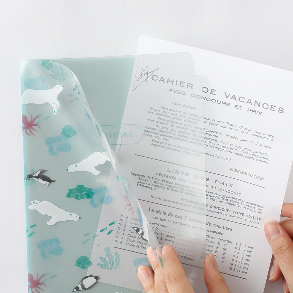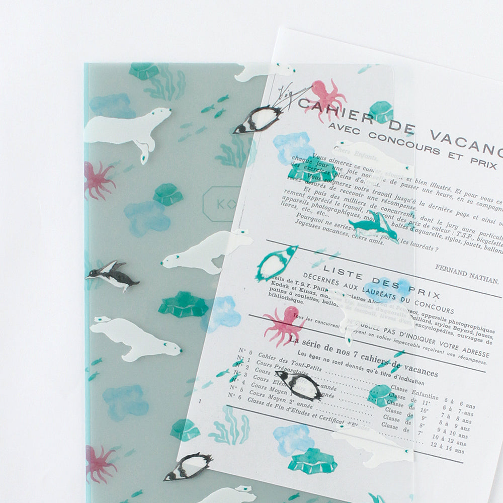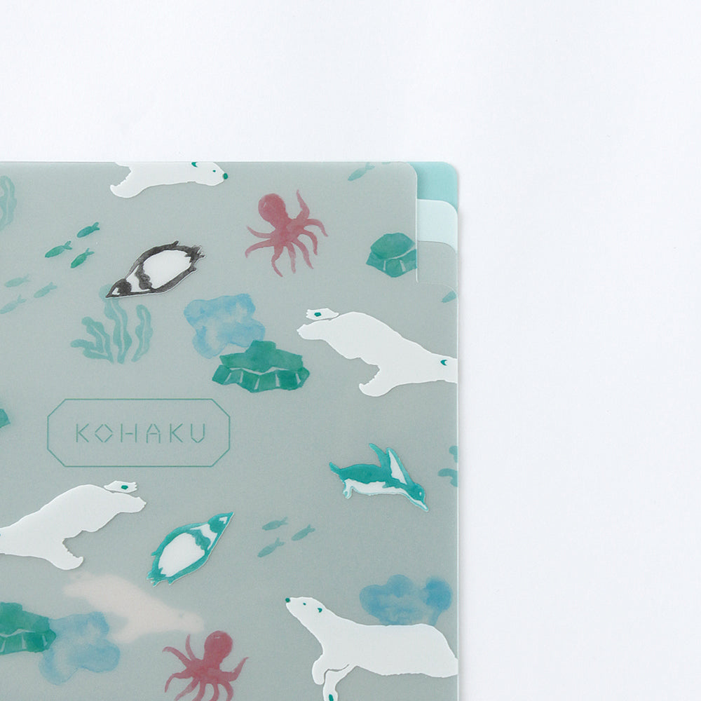 Part of the "Kohaku Series", these handy 3-pocket file folders from Japanese brand GreenFlash feature a cute polar themed pattern. A delicate transparency brings the design to life.