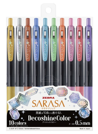 These gorgeous metallic colour gel ink Decoshine pens offer all the benefits of the popular Sarasa clip design by Zebra!