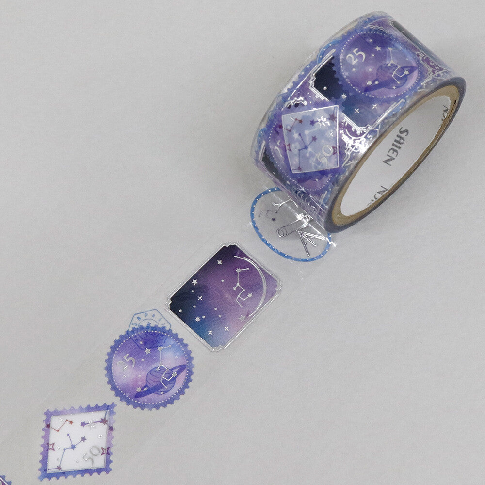 This wonderfully illustrated constellation-themed design features various star signs illustrated in stamp form.