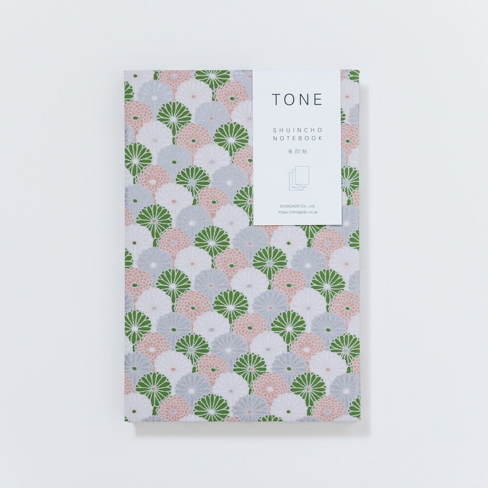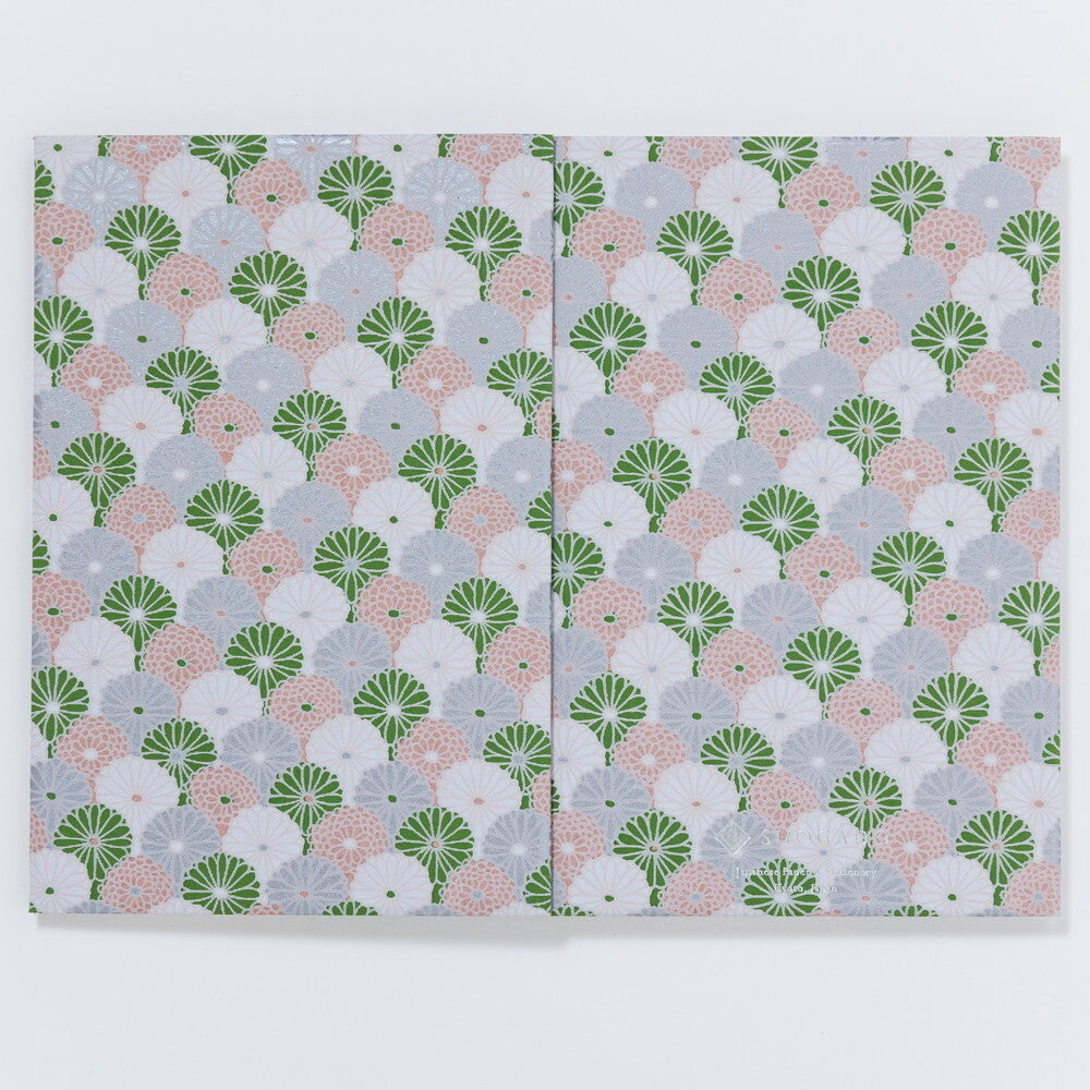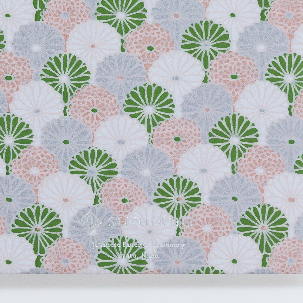 Shogado Yuzen Folding Goshuin Stampbook - Shuincho Tone Series - Green & White Chrysanthemum #4