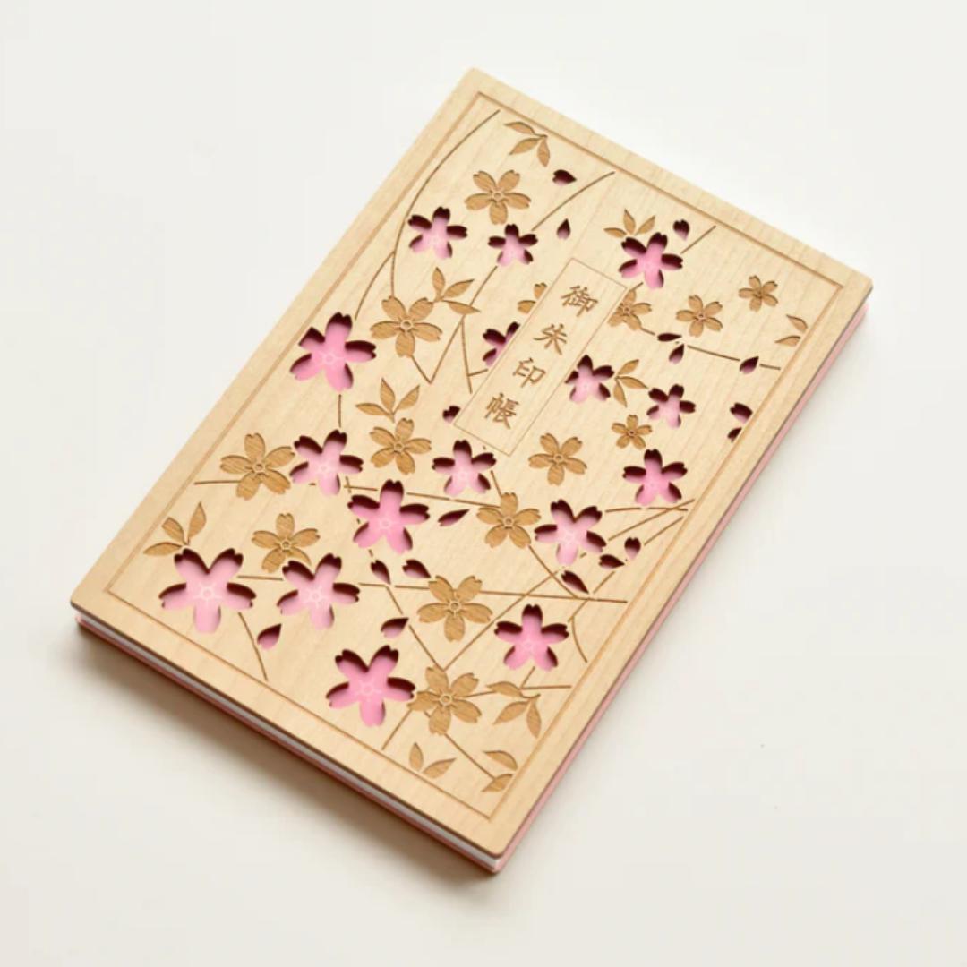 Celebrate the beauty of Spring time in Japan with this beautifully crafted Goshuin stamp book, featuring a laser-cut wooden cover adorned with a gorgeous Sakura blossom design. The intricate carving adorned with delicate cherry blossom flowers brings an elegant touch to the cover, blending tradition with modern design.