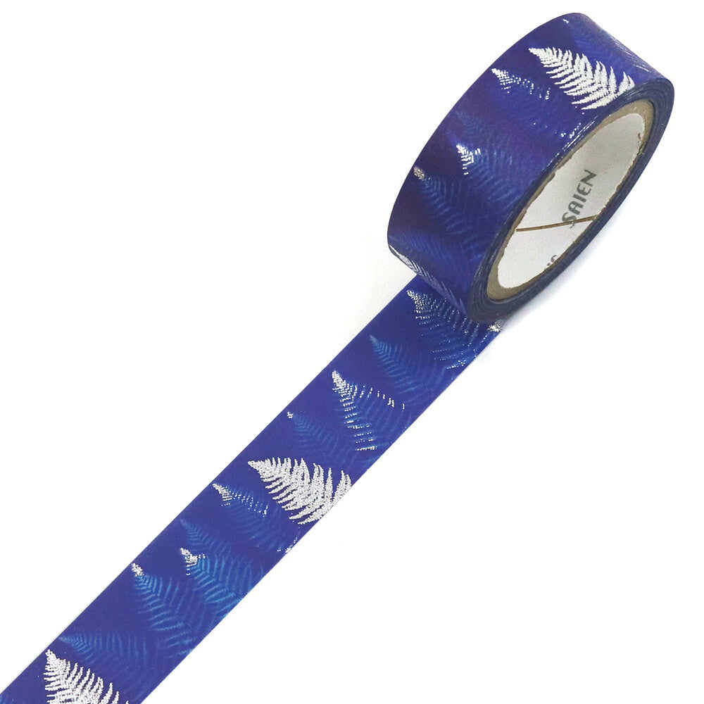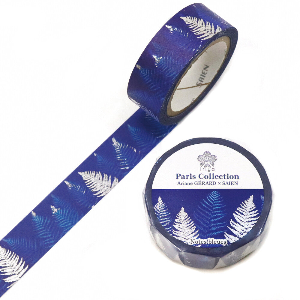 Part of a collaboration between SAIEN and Paris-based watercolour artist Ariane Gerard of Iriya, this stunning fern-themed design is titled "Notes Bleues" and combines Japanese and Parisian aesthetics. Accented by silver foil inlays that add to the premium appearance of this stunning tape.