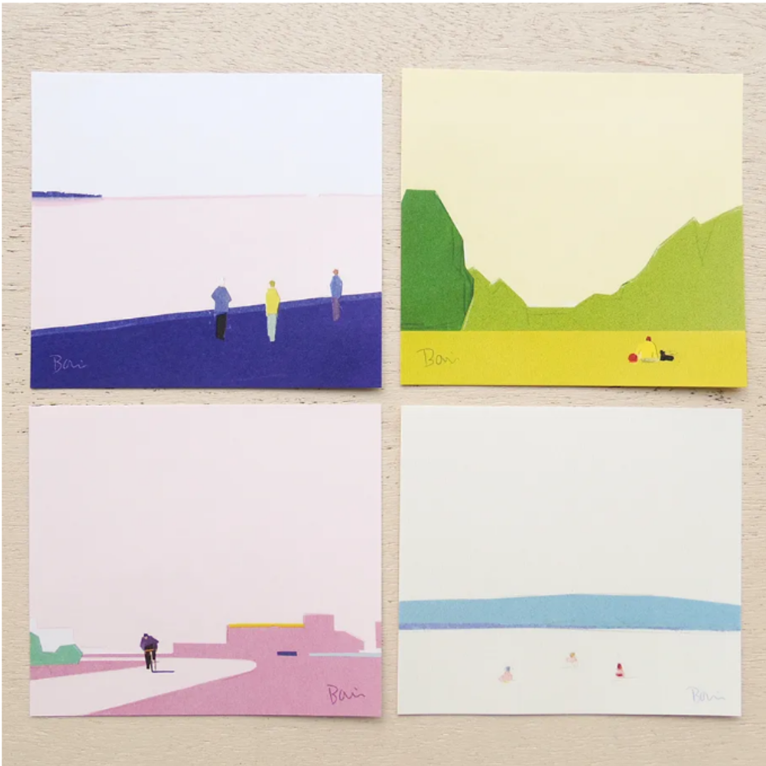 Each sheet showcases elegant, minimalist illustrations by Japanese artist Taku Bannai, capturing serene glimpses of nature and city life. From quiet seaside scenes and sunlit fields to rolling mountains and charming urban streets, every design evokes a peaceful, reflective moment, making each note feel thoughtful and uplifting.