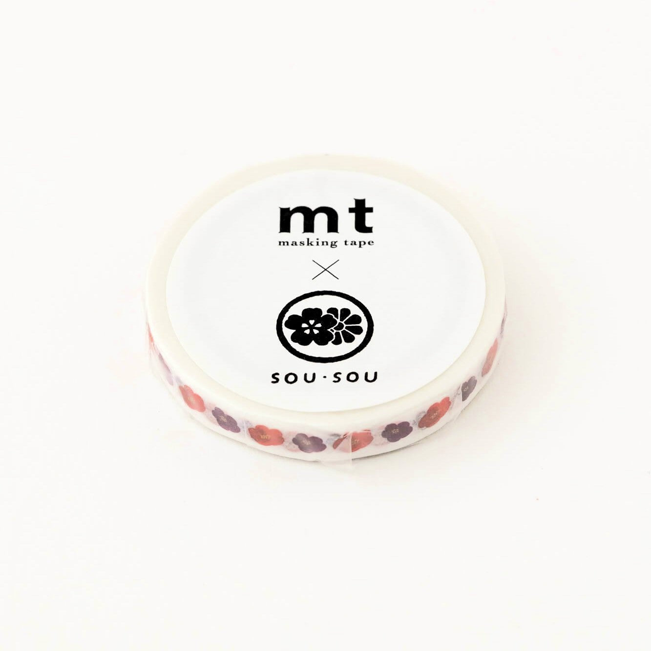 This exciting collaboration with Kyoto-based Japanese design house - SOU.SOU features gorgeous floral and abstract designs synonymous with the brand. This "Hanatsubaki" design features red and purple flowers on a white background. A narrow tape at just 7mm wide, it's ideal for decorating thinner areas such as book-edges and so on.
