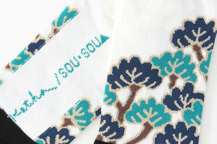 Step into everyday style with a touch of Japanese natural charm. These SOU.SOU Low-Cut Tabi Socks showcase a pine tree pattern in blue tones against a white background, blending natural inspiration with the brand’s modern Japanese aesthetic. Ideal for everyday wear with sandals, Tabi shoes, or casual footwear.