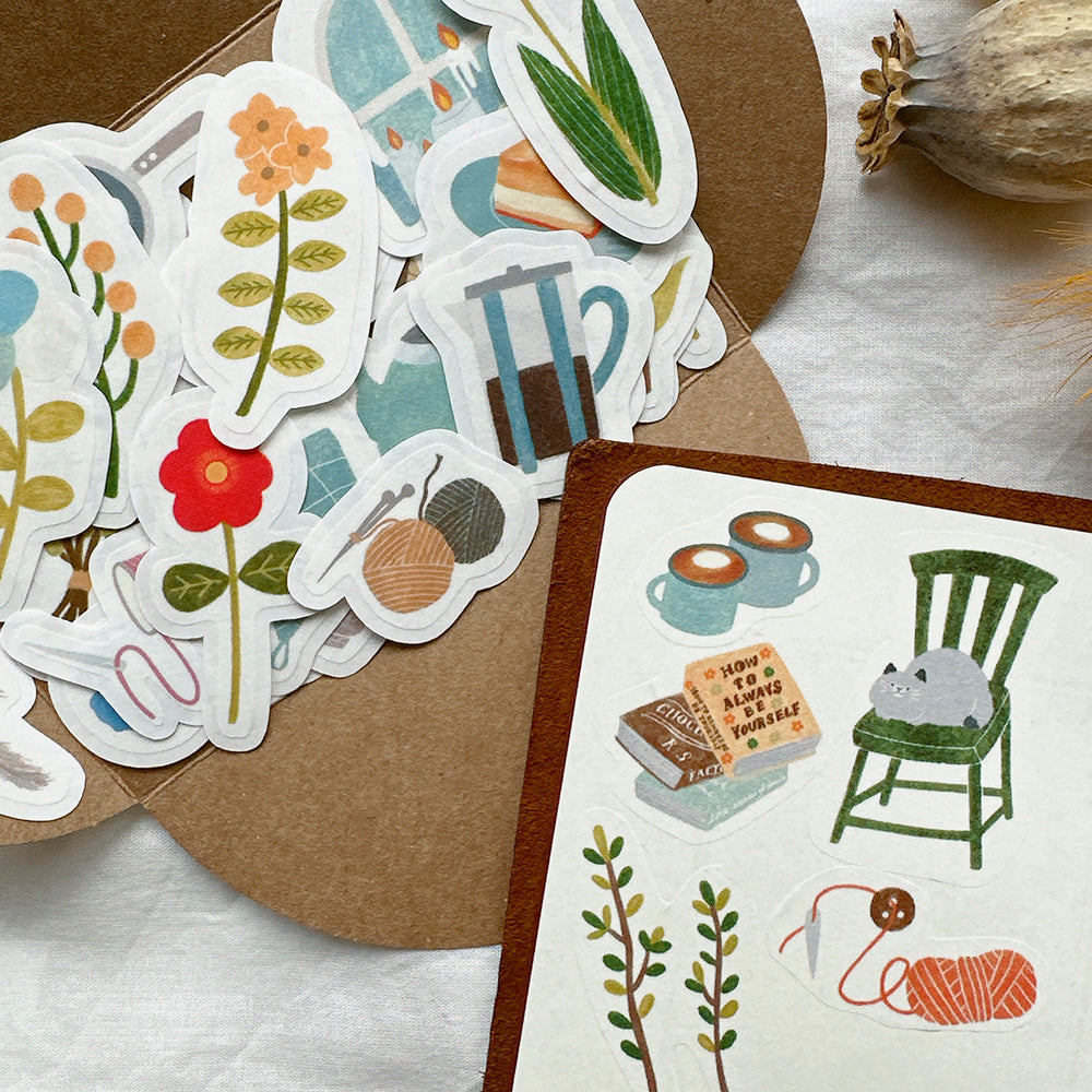 Yuka Butter Washi Flake Stickers - "Cozy Weekend" (50 Piece Set)