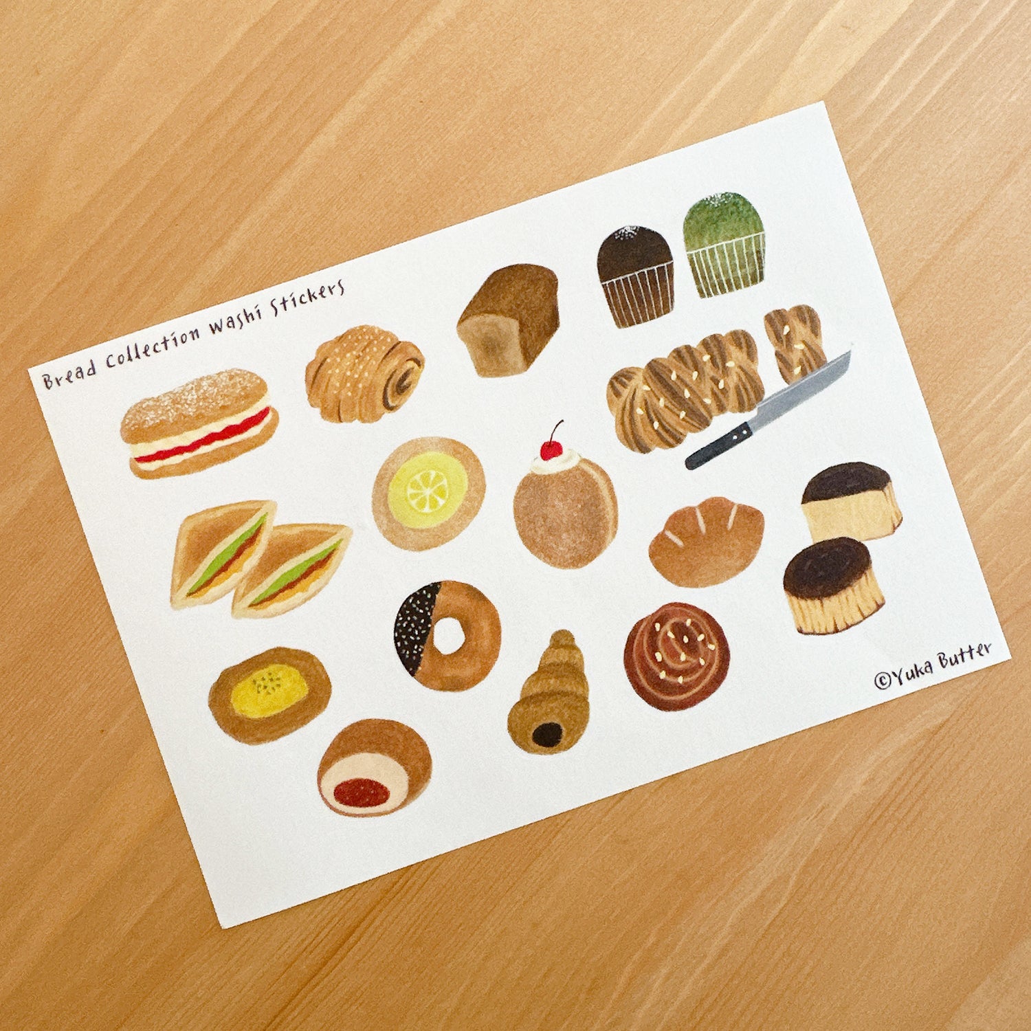 Yuka Butter Washi Sticker Sheet - "Bread Collection" (A5 Size)