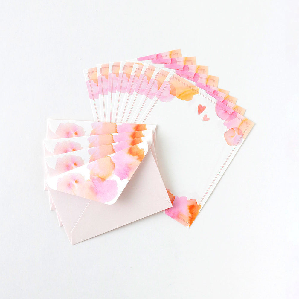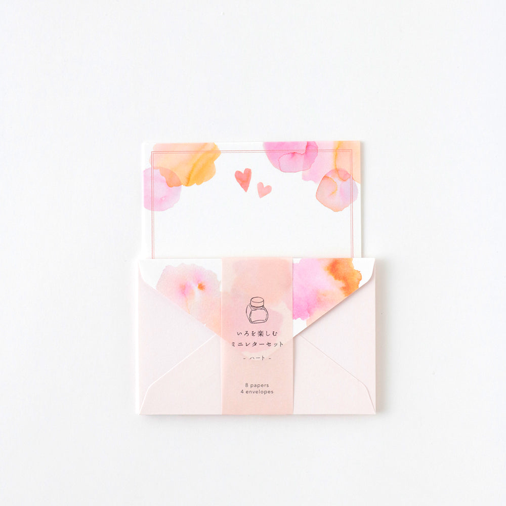 Part of the "Enjoy Colour" series (iro-wo-tanoshimu いろを楽しむ), this cute mini letter set from Japanese brand GreenFlash feature a softly illustrated pink heart design.