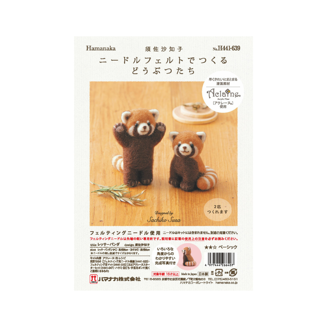 This kit includes high-quality Hamanaka "Aclaine" acrylic fiber, specially designed for easy felting, allowing the wool to bind smoothly and efficiently. Perfect for beginners and experienced felters alike, this kit provides everything you need to create charming, lifelike Red Panda figures.