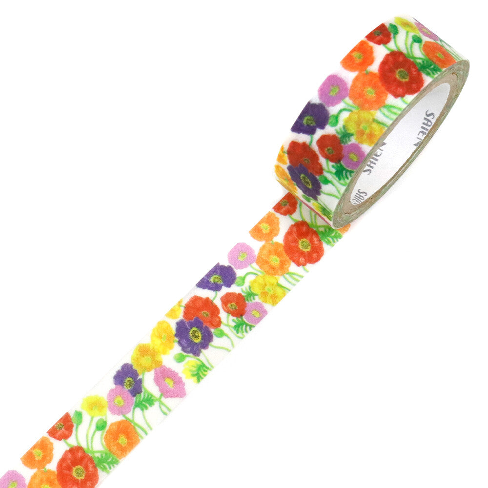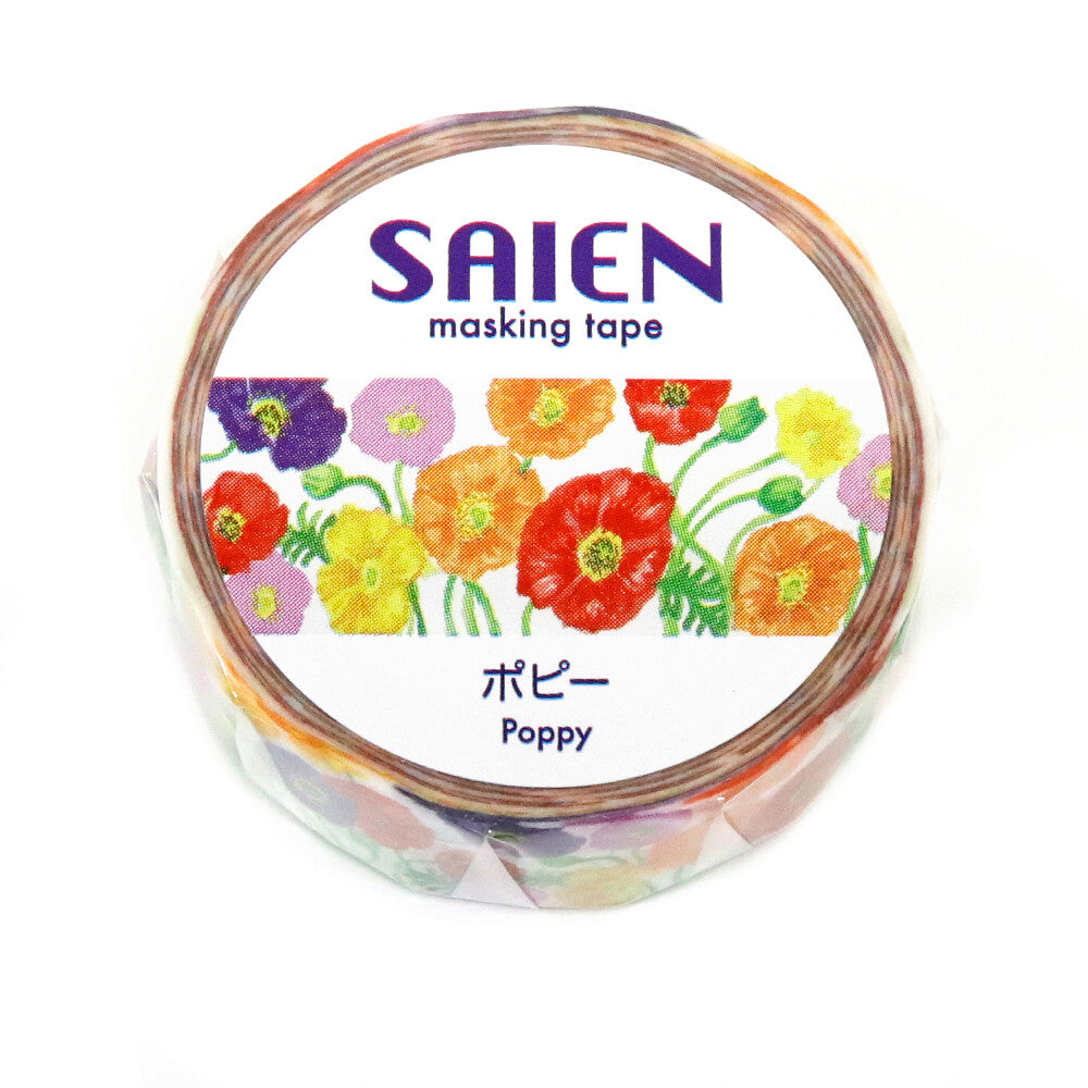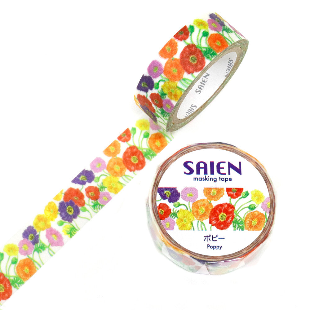 Many of the SAIEN series designs are centered around nature as well as traditional Japanese patterns. This bright floral poppy design makes it ideal for a wide range of decorative applications. The extra length at 7 meters makes it ideal for gift wrapping decorations too!